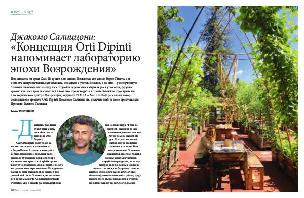 социального проекта Orti Dipinti Джакомо Салиццони, получивший за него престижную