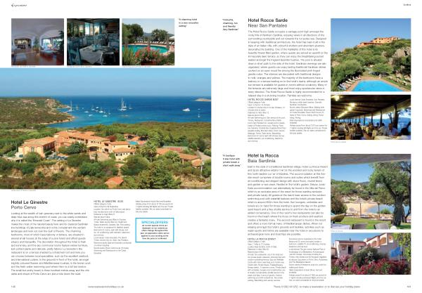Built in the style of a traditional Sardinian village , Hotel La Rocca Resort and Spa ’ s attractive exterior mirrors the wooded and rocky terrain of this north-eastern corner of Sardinia . The accommodation at this fivestar resort comprises of double rooms and suites which benefit from air-conditioning and elegant design with stone floors , neutral linens and garden or sea views . Nestled in the hotel ’ s garden , Deluxe Junior Suite accommodation can alternatively be found in the Villa del Parco which is an exclusive area of the resort for those wanting seclusion and private luxury . All guests at the resort have access to the outdoor swimming pool with waterfall features and the hotel ’ s private beach which is around 800m from the hotel . Sun loungers , umbrellas and towels are on hand for those wanting to spend the day on the golden sand beach and a free shuttle service to and from the hotel is an added convenience . One of the resort ’ s two restaurants can also be found on the beach where the focus on fresh produce and seafood creates a fantastic menu . The second restaurant is found in the resort and offers a more formal menu of Mediterranean dishes . When not relaxing amongst the hotel ’ s grounds and facilities , activities such as water sports and tennis are available near the hotel or excursions to archaeological ruins and boat trips are possible .