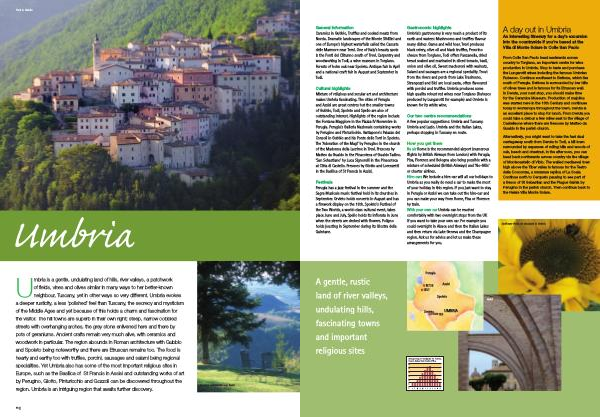 Our two centre recommendations A few popular suggestions : Umbria and Tuscany . Umbria and Lazio . Umbria and the Italian Lakes , perhaps stopping in Tuscany en route .