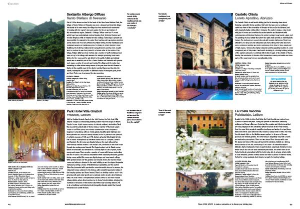 CASTELLO CHIOLA IE741 Official category 4 star . Open All year Location In a village overlooking countryside a few miles inland . Distances in miles Pescara 15 , Rome 142 . Nearest airport Rome . At hotel Outdoor pool ( in operation from May to September ), Bar service at the pool , Restaurant , Lift , Parking , Garden , Bar , Room service . Bedrooms 36 each with private bathroom and wc , air�conditioning , heating , telephone , television , mini�bar . Local interest Sandy beaches and coast about 12 miles away , Hill�top towns and countryside . Sports nearby Riding , Golf , Fishing , Sailing , Tennis , Watersports .