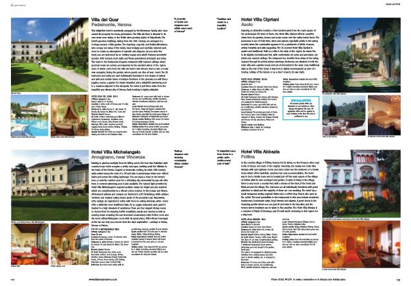 HOTEL VILLA DEL QUAR IE111 Official category 5 star . Open 5 April to 31 October . Location 3 miles north of Verona and 15 miles east of Lake Garda . Distances in miles Verona 5 , Lake Garda 15 , Brescia 48 , Venice 70 , Milan 100 , Rome 320 . Nearest airport Verona . At hotel Outdoor swimming pool ( May to September ), Restaurant , Breakfast room , Fitness room , Sauna , Gym , Bicycle rental , Massage , Wine cellar , Spacious grounds , Jogging track , Room service , Parking , Helipad , Tea Room , Baby�sitting . Special interest The hotel can organise wine tasting and visits to the Palladian villas .