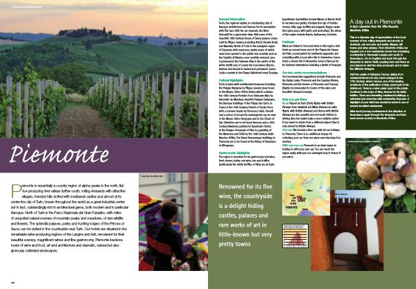 Our two centre recommendations Our recommended suggestions include Piemonte and the Italian Lakes , Piemonte and the Ligurian Riviera , Piemonte and the Veneto or Piemonte and Tuscany ( highly recommended for lovers of fine wine and beautiful vineyard scenery ).