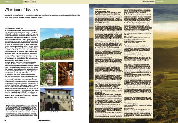 About the region and the tour We have always maintained that an appreciation of Tuscany is akin to the appreciation of life itself . Its classical landscape of rolling hills and vineyards dotted with olive and cypress trees , its misty green-grey mountains that are never too far distant , and perched hill towns of rich brown and golden stone harbouring priceless works of art that have defined western civilisation , creates a blend of natural earthiness and human endeavour that has lasted for centuries . From the Romans and before , through the Renaissance and the Risorgimento , to the present day , this soil and landscape has evolved but retained deep roots with its origins . In terms of wine production , Tuscany is incredibly important , offering a variety of different types of wine that reflect the variety of soil , altitude and climate ( the terroir ) of this region but also in terms of quality of wine produced and innovations in really quite recent years . Whilst Chianti Classico is one of the oldest delimited wine regions in the world , having been established some 300 years ago by the Grand Duke of Tuscany , Cosimo III , Tuscany also has given birth to some of the most prestigious and sought-after ‘ new ’ wines , the Super Tuscans , dating in significant numbers only since the 1970s . On this tour , we visit a range of some of the most interesting wine estates from the Classico heartland between Florence and Siena , reflecting the quality of the wine here as well as their subtle differences in style , to the revered Brunello di Montalcino and the white Vernaccia di San Gimignano . Not only will you receive a fascinating insight into the wines of Tuscany , this tour will also show you how agriculture shaped the history and social fabric of the region . Our route takes us along typically winding Tuscan roads through dense forest which then suddenly give way glorious panoramas over the valleys below , tasting delicious red wines from the indigenous Sangiovese variety , with its hints of sour cherries and bramble notes . You explore Chianti Classico , the more southerly region of the Brunello , and appreciate the lighter notes of Vernaccia . In accompaniment to the fine wine of the region , Tuscan food is seasonal , unfussy and delicious , developed over the centuries as abbinamento for the local wines . Grapes are a favourite snack for the wild boar that roam the valleys , so the ideal solution for winemakers is the wild boar salami which appears as tempting antipasti with a glass of Chianti ! As well as the wine and food , there is time to soak up the atmosphere in the small hilltop town of Radda-in-Chianti , explore Montalcino with its fortress and visit the mediaeval town of towers , San Gimignano .