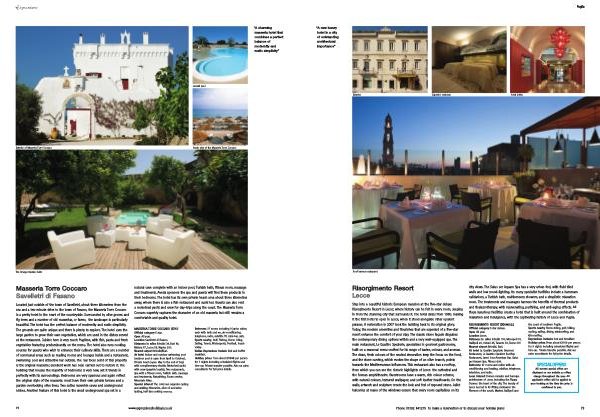 RISORGIMENTO RESORT EXH46022 Official category 5 star deluxe . Open All year . Location Lecce . Distances in miles Brindisi 100 , Monopoli 70 , Gallipoli 23 , Ostuni 45 , Taranto 53 , Rome 370 Nearest airport Brindisi , Bari . At hotel Le Quattro Spezierie Gourmet Restaurant , Le Quattro Speziere Rooftop Restaurant , Janet Ross American Bar , Salus per Aquam Spa , Fitness club . Bedrooms 47 rooms and suites with airconditioning and heating , minibar , telephone , television , and radio . Local interest Roman remains and baroque architecture of Lecce , including the Piazza Duomo : the heart of the city . The beauty of Lecce has led to its fitting nickname : the Florence of the south . Market . Gallipoli and