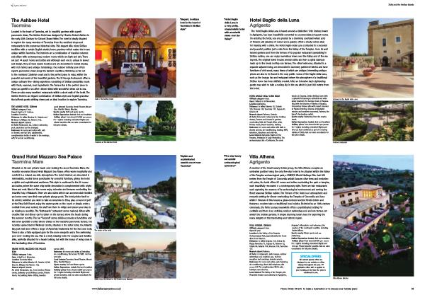 VILLA ATHENA EXH958 Official category 5 star . Open All year . Location In the Valley of the Temples Archaeological Park , approximately two hours drive from Palermo . Distances in miles Aragona 11.5 , Scicca 38 , Piazza Armerina 73 , Ragusa 81 , Palermo 82 , Cefalù 86 , Catania 105 , Siracusa 135 , Taormina 137 . Nearest airport Palermo . At hotel 2 restaurants , patio lounge , outdoor swimming pool , solarium , spa , 24-hour reception and concierge , laundry service . Bedrooms 25 rooms and suites , each featuring air-conditioning , direct-dial telephone , flat screen LCD TV , complimentary Wi-Fi , safe , hairdryer and mini-bar . Local interest The Valley of the Temples , the Pirandello theatre and cathedral in Agrigento ,