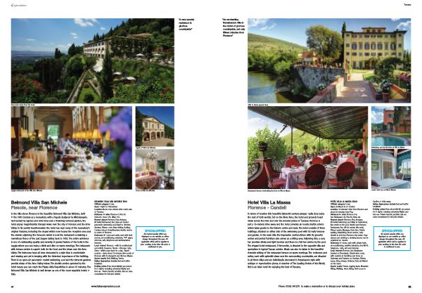 HOTEL VILLA LA MASSA IE251 Official category 5 star . Open 29 March to 27 October Location 15 minutes ' drive from Florence and about 60 minutes from Pisa . Distances in miles Florence 4 ½ , San Gimignano 35 , Pisa 48 , Siena 42 . Nearest airport Florence , Pisa , Bologna . At hotel Swimming pool ( May to September ), Bar service to the pool , Garden and terraces , Restaurant , Bar , Lift ( in central villa only ), Fitness centre , Massage , Cycle hire , Private parking , Babysitting , Room service , Daily shuttle to and from Florence city centre . Yoga classes and painting or drawing lessons can be organised on request . Bedrooms 37 rooms , each with private bath , air�conditioning , satellite television , free Wi-Fi , telephone , radio , safe and mini-bar . Local interest Florence , San Gimignano ( market on Thursdays ), Chianti wine route , with markets at Castellina and Greve on Saturdays and Panzano on Sundays . Pistoia , Lucca , Siena , Arezzo , Volterra , Forte dei Marmi on the coast . Sports nearby Tennis , Jogging track , Mountain biking , Walking , Horse riding , Golf course in