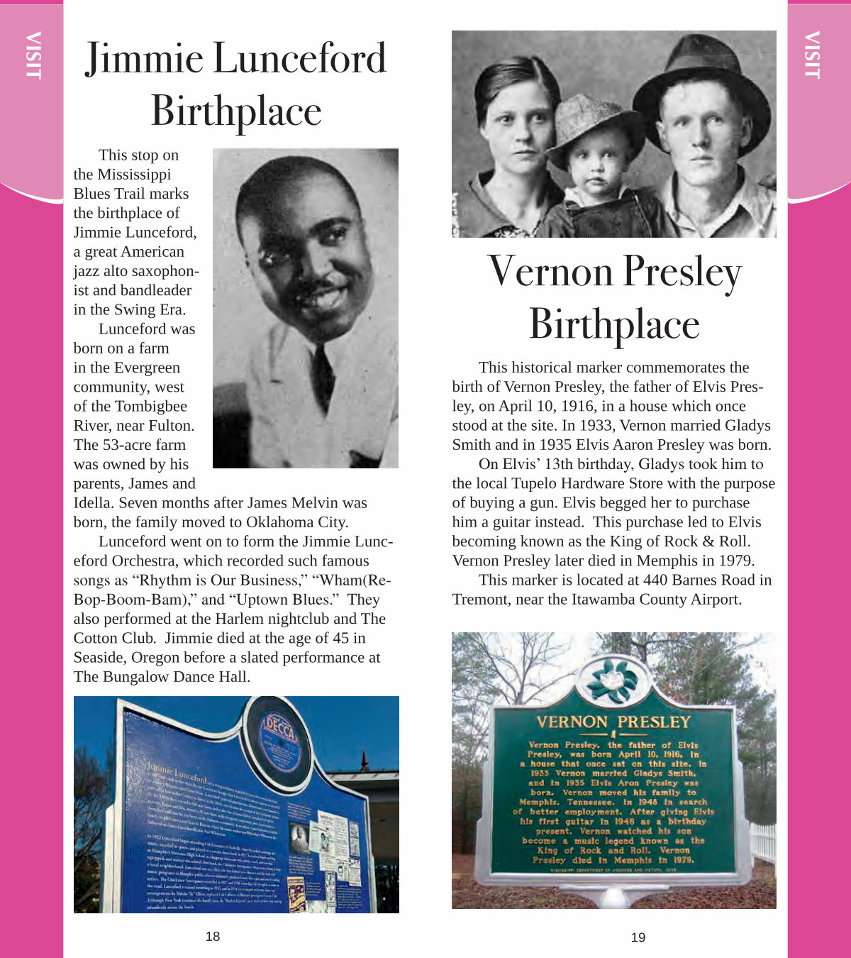 This historical marker commemorates the birth of Vernon Presley, the father of Elvis Presley, on April 10, 1916, in a house which once stood at the site. In 1933, Vernon married Gladys Smith and in 1935 Elvis Aaron Presley was born.