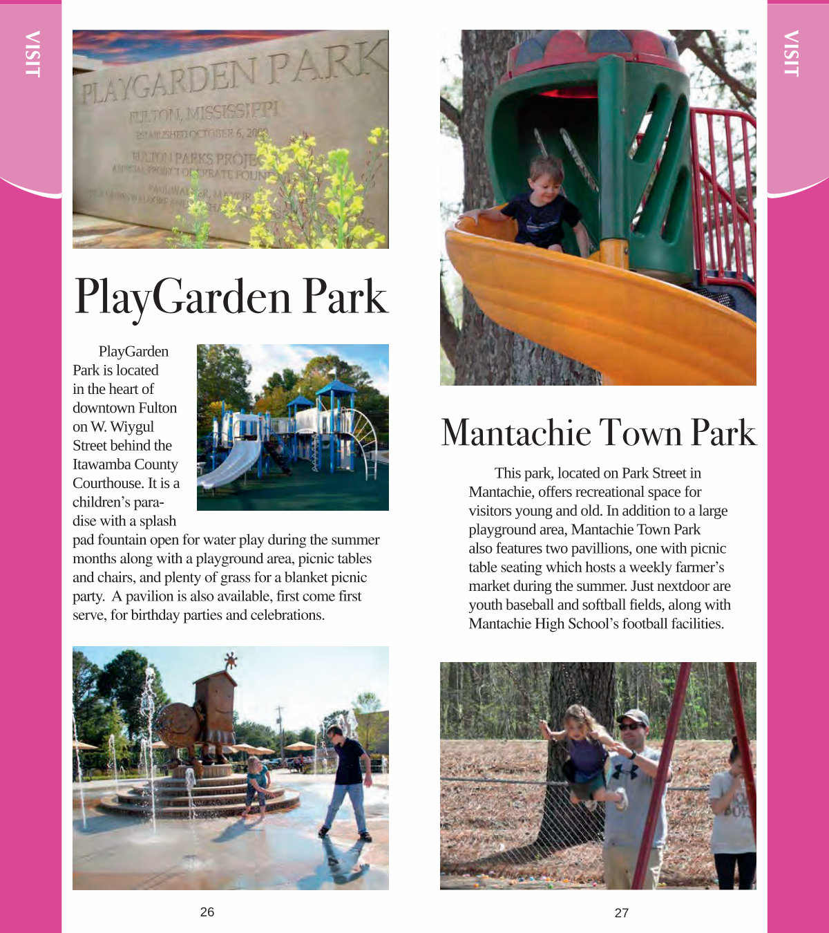 PlayGarden Park is located in the heart of downtown Fulton on W. Wiygul Street behind the Itawamba County Courthouse. It is a children’ s paradise with a splash pad fountain open for water play during the summer months along with a playground area, picnic tables and chairs, and plenty of grass for a blanket picnic party. A pavilion is also available, first come first serve, for birthday parties and celebrations.