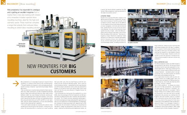 A POSITIVE TREND Despite the on-going difficulties related to the delivery times of electronic components , the positive trend continues to fuel the growth of the company ’ s turnover , thanks also to the addition of new experienced and specialised personnel at every managerial , technical and commercial level , supporting the success of the new products proposed , not only at the Florentine headquarters but also in Spain , where the Meccanoplastica Iberica division specialises in the stretch blow moulding of PET preforms : “ We have enlarged our range ” Mencherini explained “ while sticking to our distinctive corporate philosophy , which is focused on linear , non-rotational machines , and also looking with greater attention to the beverage market , including solutions for