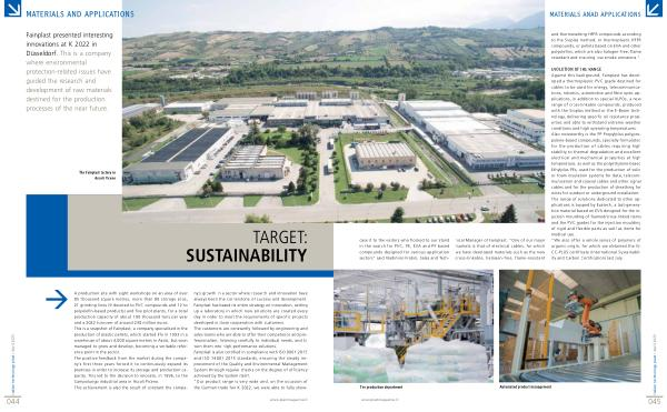 A production site with eight workshops on an area of over 85 thousand square metres , more than 80 storage silos , 21 grinding lines ( 9 devoted to PVC compounds and 12 to polyolefin-based products ) and five pilot plants , for a total production capacity of about 100 thousand tons per year and a 2022 turnover of around 230 million euros . This is a snapshot of Fainplast , a company specialised in the production of plastic pellets , which started life in 1993 in a warehouse of about 4,000 square metres in Assisi , but soon managed to grow and develop , becoming a veritable reference point in the sector . The positive feedback from the market during the company ’ s first three years forced it to continuously expand its premises in order to increase its storage and production capacity . This led to the decision to relocate , in 1996 , to the Campolungo industrial area in Ascoli Piceno . This achievement is also the result of constant the company ’ s growth in a sector where research and innovation have always been the cornerstone of success and development . Fainplast has based its entire strategy on innovation , setting up a laboratory in which new solutions are created every day in order to meet the requirements of specific projects developed in close cooperation with customers . The customers are constantly followed by engineering and sales teams who are able to offer their competence and professionalism , listening carefully to individual needs , and to turn them into high-performance solutions . Fainplast is also certified in compliance with ISO 9001:2015 and ISO 14001:2015 standards , ensuring the steady improvement of the Quality and Environmental Management System through regular checks on the degree of efficiency achieved by the System itself . “ Our product range is very wide and , on the occasion of the German trade fair K 2022 , we were able to fully show-