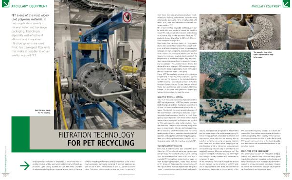 QUALITY OF RECYCLED MATERIAL This “ run ” towards ever increasingly demand for rPET , has led producers of PET packaging products ( both food grade and non-food grade applications ) to look for more contaminated sources of PET waste . Fimic ’ s melt filters are recognized as one of the best filtration technologies dedicated to contaminated post-consumer plastics ; to reach high quality recycled plastics from more contaminated waste streams , automatic technologies are needed to filter out impurities and contaminations from the melt flow . Fimic has been working many years now on improving its filtration technologies in order to meet and satisfy the needs ( ever increasing quality needs , different materials characteristics ) of recyclers , and expanding its technology to applications that previously did not require the use of continuous scraping melt filters such as , precisely , PET . |