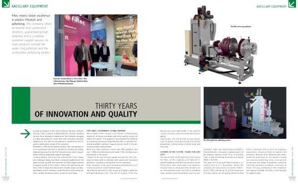 A leading company in the field of plastics filtration and pelletising , Filtec is based in Badia Polesine , Rovigo . Building on over three decades of experience , the Venetian company is highly specialised in customised and innovative solutions adapting to the specific management , production and resource optimisation needs of its customers . Founded in 1993 by the Baracco family , Filtec has quickly risen to a prominent position in the sector , introducing cuttingedge products such as the first horizontal-axis water ring pelletiser and the underwater system prototype . These products , which are still to be found in the company ’ s catalogue today , have been constantly updated over the years to keep up with the evolution of technologies and the changing needs of the market . Along with pelletising systems , Filtec ’ s range of products also includes single and double breaker screen changers , water filtration and cooling systems , vented vibrating screens , as well as centrifuges .