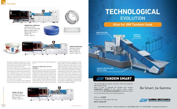 042 eKW28Pi / 1300 Hybrid Clamping force 2,800 kN Item = 400-ml food container Number of cavities = 6 Cycle time = approx. 3.9 s www. plastmagazine. it