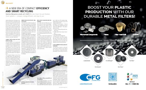 and visual harmony come together in a series of machines that don’ t just perform well, but look the part. Gamma Meccanica’ s booth at K 2025 will be a showcase of smart, sustainable engineering tailored to meet the evolving needs of recyclers worldwide. Visitors can expect to see not only innovative machinery, but a vision of plastic regeneration where efficiency, responsibility, and intelligence go hand in hand. |