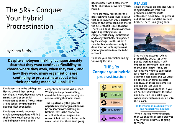 competitor down the virtual road. Whilst you are procrastinating about the future, your employees are evaluating their next move.