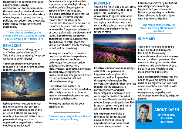 Continue to reinvent your hybrid operating model as change happens and you learn more. Never stop aspiring to be better. Keep reinventing leadership for your hybrid organization.
