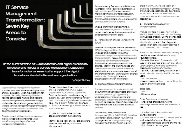 Use industry best practices and frameworks (ITIL 4, CoBIT, IT4IT) to define your target state. Design your Service management technology accordingly. Focus on the transformation in every