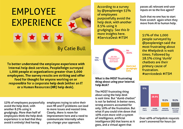 According to a survey by @peoplereign 53% of employees purposefully avoid the help desk, with another 8.5% using it grudgingly. See this & more insights here. #ServiceDesk #ITSM
