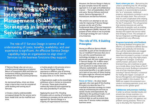 This article is an attempt to set out rules for improving IT Service Design success via the use of a few fundamental ideas of Service Integration and Management (SIAM). However, the purpose of this article is not to provide a thorough strategy for use in actual circumstances.