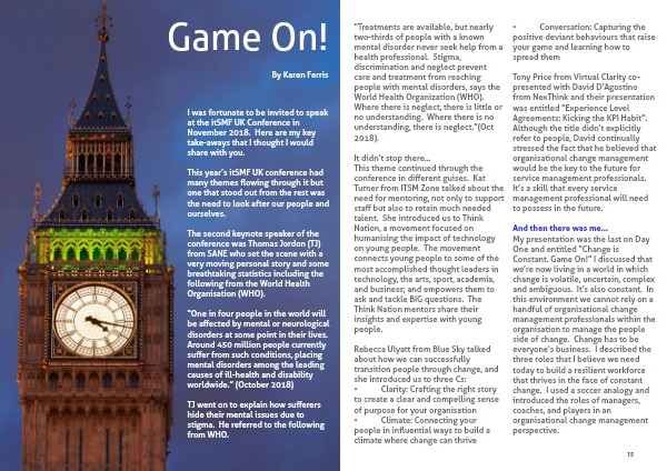 I was fortunate to be invited to speak at the itSMF UK Conference in November 2018. Here are my key take-aways that I thought I would share with you.