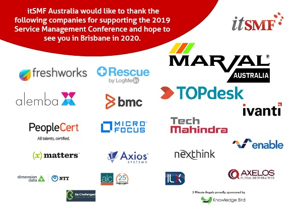 itSMF Australia would like to thank the following companies for supporting the 2019 Service Management Conference and hope to see you in Brisbane in 2020.