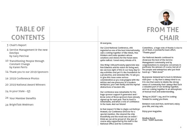 Our National Awards continued to showcase the best of the Service Management community and by congratulations to everyone concerned, in particular the winners of course, but all of the people and enterprises who put their hand up – “Well done!”