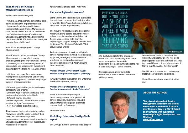 "Gary is an independent Service Management consultant and trainer. He has been a member of itSMF for over 12 years. Gary is a ITIL v3 Expert and v2 Master, with supporting knowledge in Agile, DevOps and Lean Thinking."