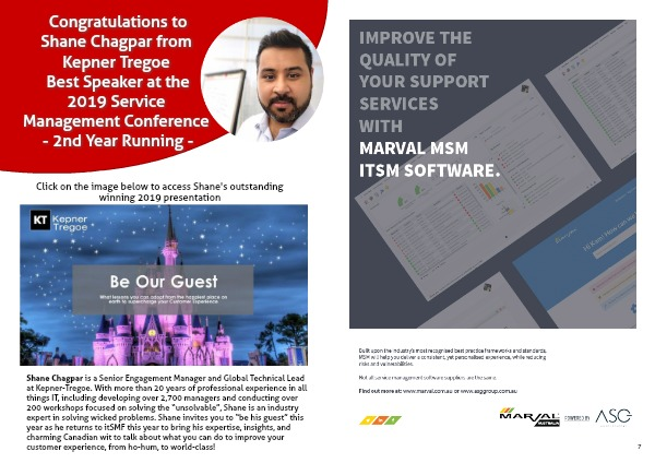 Shane Chagpar is a Senior Engagement Manager and Global Technical Lead at Kepner-Tregoe. With more than 20 years of professional experience in all things IT, including developing over 2,700 managers and conducting over 200 workshops focused on solving the “unsolvable”, Shane is an industry expert in solving wicked problems. Shane invites you to “be his guest” this year as he returns to itSMF this year to bring his expertise, insights, and charming Canadian wit to talk about what you can do to improve your customer experience, from ho-hum, to world-class!