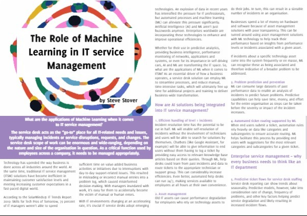 The Role of Machine Learning in IT service Management