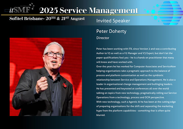 Peter has been working with ITIL since Version 2 and was a contributing Author to V3 as well as a V2 Manager and V3 Expert, but don't let the paper qualifications fool you - he is a hands on practitioner that many will know and have worked with.