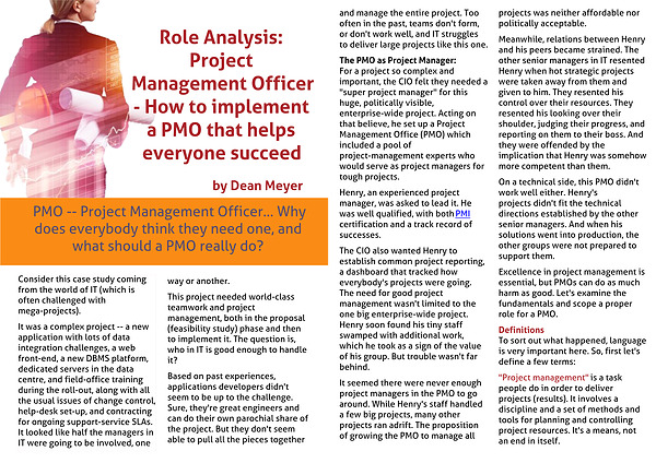 Role Analysis: Project Management Officer - How to implement a PMO that helps everyone succeed
