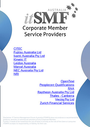 Disclaimer: IT Service Management Forum Australia (ITSMFA) does not endorse or recommend the products, services, or commercial solutions of any Corporate Member.