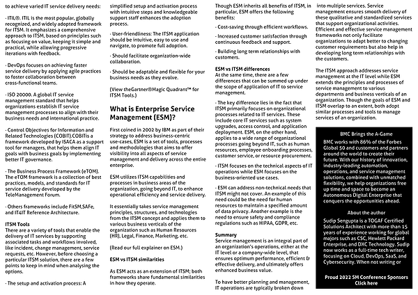 First coined in 2002 by IBM as part of their strategy to address business-centric use-cases, ESM is a set of tools, processes and methodologies that aims to offer visibility into all aspects of service management and delivery across the entire enterprise.