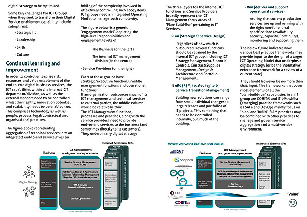 The ICT Management functions, processes and practices, along with the service providers need to provide end-to-end services to the business (and sometimes directly to its customers). They underpin any digital strategy