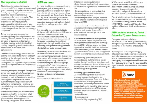 In 2021, intelligent automation is a top priority for 75% of enterprises. A growing consensus expects that digital experience will be only be compelling, but measurably so. According to Gartner®, “By 2025, 70% of digital business initiatives will require I&O leaders to report on business metrics from digital experience, up from less than 15% today.”
