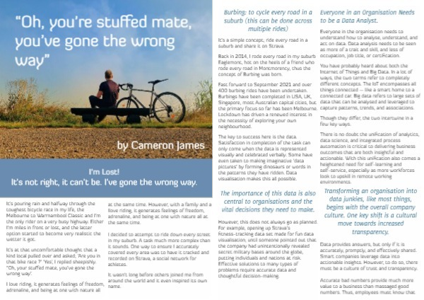 I decided to attempt to ride down every street in my suburb. A task much more complex than it sounds. One way to ensure I accurately covered every area was to have it tracked and recorded on Strava, a social network for athletes.