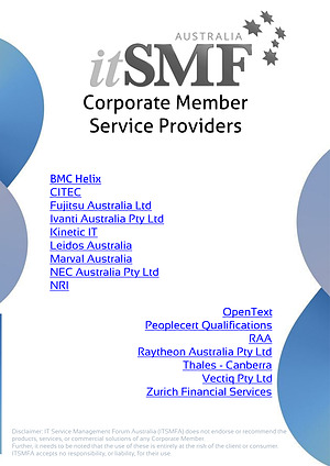 Disclaimer: IT Service Management Forum Australia (ITSMFA) does not endorse or recommend the products, services, or commercial solutions of any Corporate Member.