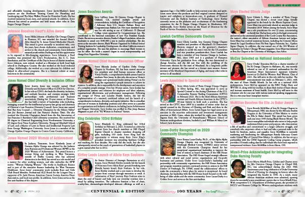 In Jackson , Tennessee , Soror Kimberly Jones of Gamma Alpha Omega was selected by the Jackson Area Business and Professional Women ( BPW ) as the 2020 Woman of Achievement . This award honors a woman living and working in West Tennessee , outside of Shelby County , who has achieved distinction in her field , has served as a role model and a mentor for other working women , and who embodies the BPW motto : " Women Helping Women ." She works in healthcare finance and is part of the executive finance leadership for West Tennessee Healthcare . Soror Jones ' community work includes Boys and Girls Club Board Member , Professional ALZ Board for the Longest Day , a supporter of St . Jude Heroes , American Cancer Society , America Heart Association , and local non-profits . In addition , Soror Jones serves as the first anti-basileus of the chapter .