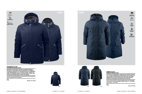YTTERTYG : 100 % POLYESTER MED MEMBRAN , 5000WP / 5000 MVP . VATTENAVVISANDE BIONIC-FINISH ECO . VADD : ÅTERVUNNEN POLYESTER , 160 G / M ² ( 2,6 – 2,8 CLO ) I KROPP OCH 140 G / M ² ( 2,3 – 2,5 CLO ) I ÄRM .