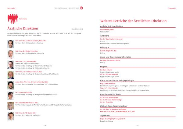 Priv . -Doz . DDr . Christian Albrecht , MBA , MSc Vorstand der I . Orthopädischen Abteilung