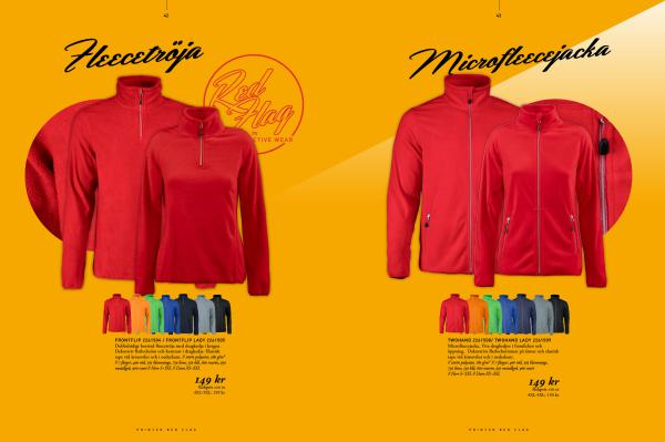 // 100 % polyester, 180 g/ m² // 7 f ärger; 400 rö d, 305 kl arora nge,