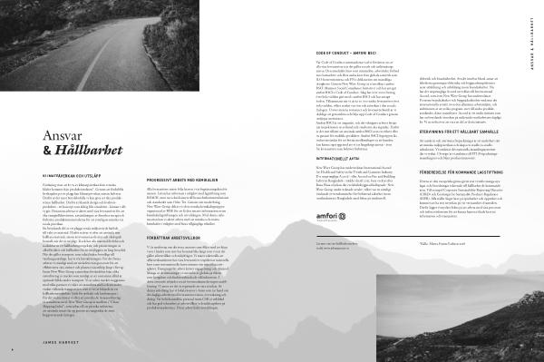 Vår Code of Conduct sammanfattar vad vi förväntar oss av alla våra leverantörer när det gäller socialt och miljömässigt ansvar. Den innehåller krav som minimilön, arbetstider, förbud mot barnarbete och flera andra krav från globala ramverk som ILO-konventionerna och FN: s deklaration om mänskliga rättigheter. Genom New Wave Group är vi medlem i amfori BSCI( Business Social Compliance Initiative) och har antagit amfori BSCI: s Code of Conduct. Idag har över 2000 företag över hela världen gått med i amfori BSCI och har antagit koden. Tillsammans når vi cirka 30 000 unika leverantörer över hela världen, vilket stärker vår röst och påverkan i den sociala dialogen. Utöver interna revisioner och leverantörsbesök är vi skyldiga att genomföra och följa upp Code of Conduct genom tredjepartsrevisioner. Amfori BSCI är ett åtagande, och det viktigaste arbetet börjar när inspektionen är avslutad och resultaten ska åtgärdas. Därför är det inte tillåtet att använda amfori BSCI som en etikett eller en garanti för enskilda produkter. Amfori BSCI-logotypen får endast användas för att bevisa medlemskapet så att kunden kan känna sig trygg med att vi tar långsiktigt ansvar- även för leverantörer som behöver förbättras.