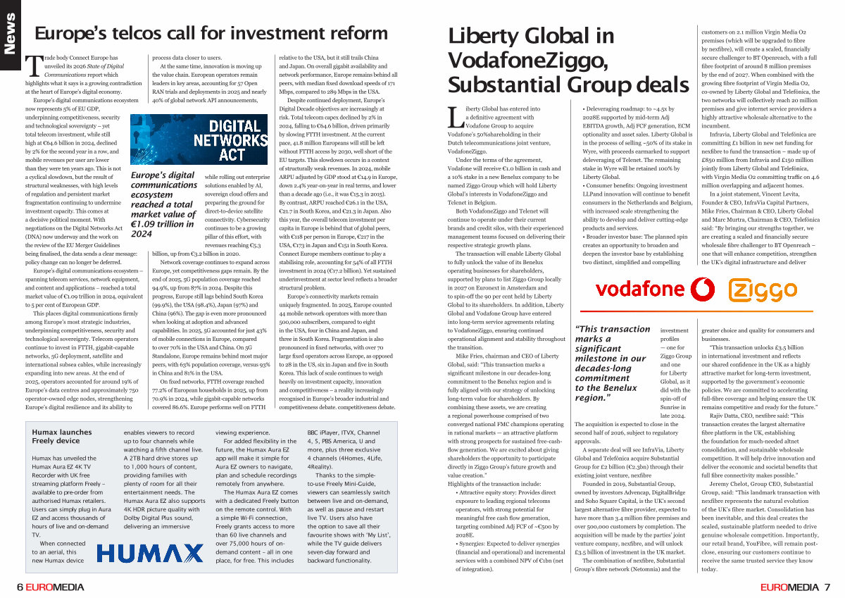 “ This transaction marks a significant milestone in our decades-long commitment to the Benelux region.” investment profiles— one for Ziggo Group and one for Liberty Global, as it did with the spin-off of Sunrise in late 2024. The acquisition is expected to close in the second half of 2026, subject to regulatory approvals.