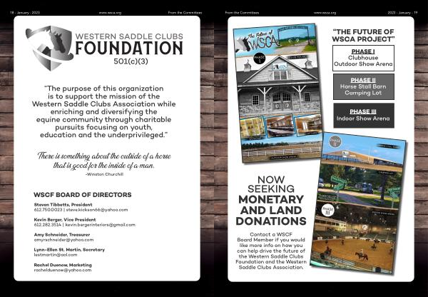 Contact a WSCF Board Member if you would like more info on how you can help drive the future of the Western Saddle Clubs Foundation and the Western Saddle Clubs Association .