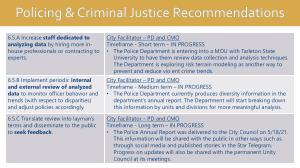 • The Police Annual Report was delivered to the City Council on 5 / 18 / 21 . This information will be shared with the public in other ways such as through social media and published stories in the Star Telegram . Progress on updates will also be shared with the permanent Unity Council at its meetings .