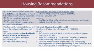 • Staff is researching best practices used in other cities to evaluate housing cost burden .
