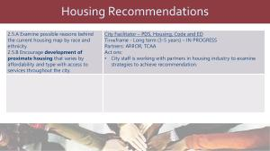 • City staff is working with partners in housing industry to examine strategies to achieve recommendation .
