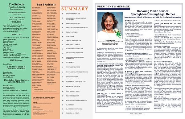 A Commitment to Oversight and Integrity: The Dual Role of General Counsel and Deputy Inspector General The foundation of strong, trustworthy governance lies in robust, independent oversight. In Palm Beach County, Florida, the Office of Inspector General( PBC OIG) exemplifies this principle, setting a national standard for the breadth of its jurisdiction and the professionalism of its staff. At the heart of this crucial work is a dedicated legal professional, serving as General Counsel and Deputy Inspector General. This article examines the vital work of the PBC OIG and highlights the significant contributions of its General Counsel, Ms. Kalinthia Dillard, a distinguished leader in both government and The Florida Bar.