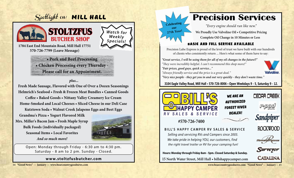 15 North Water Street, Mill Hall • billshappycamper. com www. bearcountrygoodnews. com“ Good News”-- January-- 15