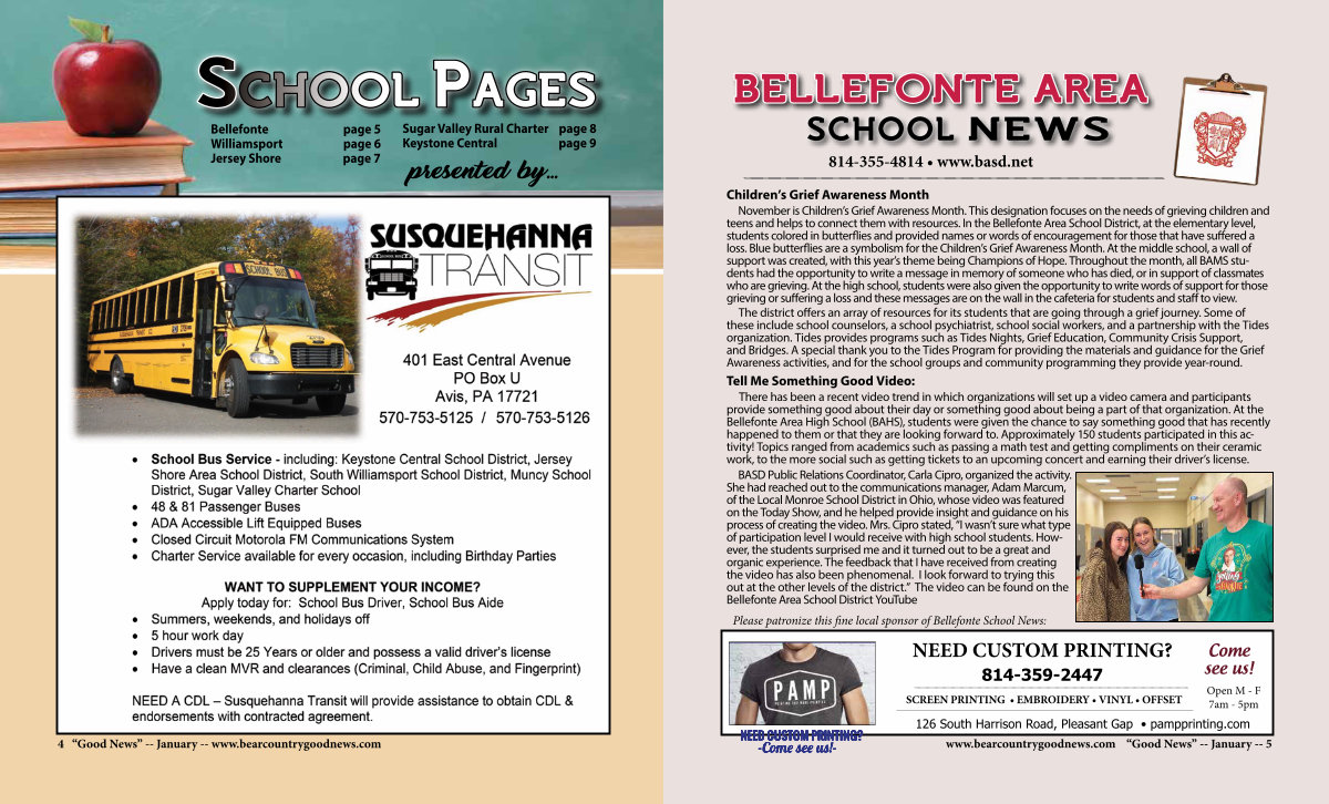 126 South Harrison Road, Pleasant Gap • pampprinting. com www. bearcountrygoodnews. com“ Good News”-- January-- 5